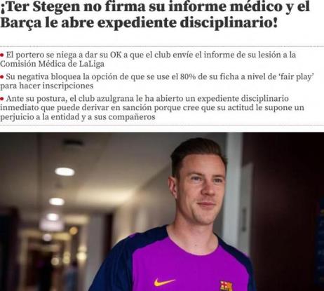 在今年夏窗開啟后,巴薩在轉(zhuǎn)會市場上從西班牙人簽下了加西亞,這筆交易花費(fèi)了俱樂部2500萬歐元的轉(zhuǎn)會費(fèi),但是他們目前的薪資空間是無法完成加西亞的注冊的。恰好這個時間點(diǎn)特爾施特根選擇了進(jìn)行手術(shù),按照西甲聯(lián)賽的官方規(guī)定,俱樂部可以使用長期傷病球員80%的薪資完成球員的注冊,也就是說如果特爾施特根“愿意長期傷病”,巴薩就可以完成新門將的注冊工作。